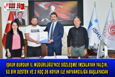 İŞKUR BURDUR İL MÜDÜRLÜĞÜ’NCE SÖZLEŞME İMZALAYAN YALÇIN, 53 BİN DESTEK VE 2 KOÇ 26 KOYUN İLE HAYVANCILIĞA BAŞLAYACAK