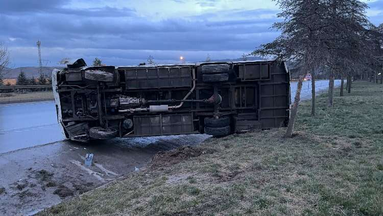 Edinilen bilgilere göre, Isparta-Afyonkarahisar kara yolunda seyreden İbrahim Pekcan idaresindeki 32 AEC 112 plakalı servis midibüsü, sürücüsünün direksiyon hâkimiyetini kaybetmesi sonucu Göltaş Çimento Fabrikası mevkiinde devrildi.