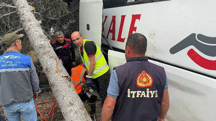 E.D'nin (47) kullandığı 35 PK 147 plakalı yolcu otobüsü, Afyonkarahisar-Isparta kara yolunun Göktaş mevkisinde kontrolden çıkarak refüjdeki ağaca çarptı.