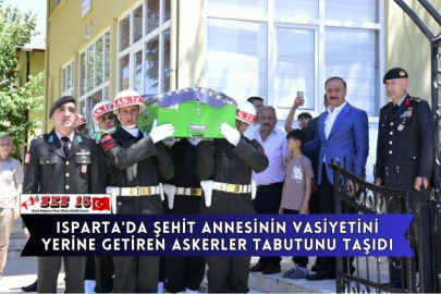 Isparta'nın Eğirdir ilçesinde şehit annesinin, vefatında askerlerin omzunda uğurlanma vasiyeti yerine getirildi.