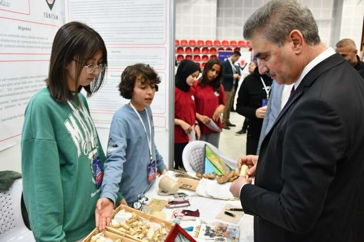 Vali Baruş sergilenen projeleri tek tek inceleyerek proje koordinatörü öğrencilerden bilgi aldı.