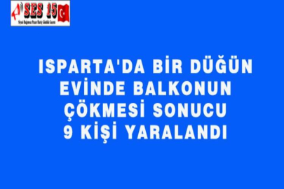 Isparta'da bir düğün evinde balkonun çökmesi sonucu 9 kişi yaralandı. Alınan bilgiye göre, merkeze bağlı Aliköy'de düğün töreni dolayısıyla kalabalığın olduğu bir evde, 3 metre yüksekliğindeki balkon çöktü.