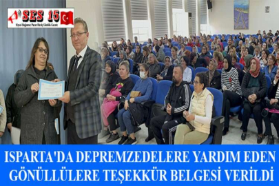 ISPARTA'DA DEPREMZEDELERE YARDIM EDEN GÖNÜLLÜLERE TEŞEKKÜR BELGESİ VERİLDİ
