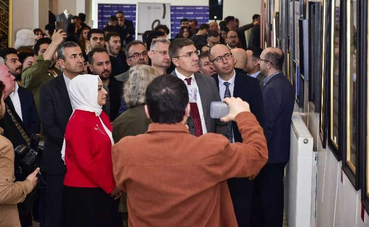Program, Hatice Pamukoğlu'na Rektör Prof. Dr. Hüseyin Dalgar tarafından bir hediye takdim edilmesi ve ardından Pamukoğlu'nun Rektör Dalgar’a bir hat tablosu hediye etmesiyle devam etti. Sergi açılış kurdelesinin kesilmesinin ardından, serginin Sanat Yönetmeni ve Küratörü Erkan Doğanay, katılımcılara sergideki eserler hakkında bilgiler sundu.