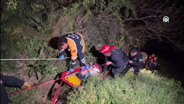 Sarp araziye halatlarla istasyon kuran ekipler, İlvanlar'ı sedyeyle düştüğü yerden kurtardı.