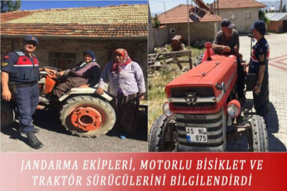 JANDARMA EKİPLERİ, MOTORLU BİSİKLET VE TRAKTÖR SÜRÜCÜLERİNİ BİLGİLENDİRDİ