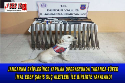 Burdur İl Jandarma Komutanlığı ekipleri, Gölhisar Cumhuriyet Savcılığı ile koordineli olarak, 6136 Sayılı Kanuna Muhalefet suçları ile mücadele kapsamında; (İ.Ö.) isimli şahsın ikametinde tabanca ve tüfek imal ederek satış yaptığı bilgisi üzerine çalışma başlattı. Yapılan çalışma sonucunda Gölhisar Cumhuriyet Savcısının kararı ile ele geçirilen malzemeler muhafaza altına alındı, (İ.Ö.) isimli şüpheli şahıs hakkında adli işlemlere başlanıldı. Konuyla ilgili olarak Burdur Valiliği tarafından yapılan açıklama şöyle; “Güvenlik güçlerimiz tarafından İlimiz genelinde suçun önlenmesi, olayların aydınlatılması ve suçluların yakalanmasına yönelik yürütülen çalışmalara kararlılıkla devam edilmektedir. Bu kapsamda İl Jandarma Komutanlığı ekipleri, Gölhisar Cumhuriyet Savcılığı ile koordineli olarak, 6136 Sayılı Kanuna Muhalefet suçları ile mücadele kapsamında; 21.05.2022 tarihinde (İ.Ö.) isimli şahsın ikametinde tabanca ve tüfek imal ederek satış yaptığı bilgisi üzerine çalışma başlatmıştır. Elde edilen bilgiler doğrultusunda Burdur İli, Çavdır İlçesi, Bayır Köyünde (İ.Ö.) isimli şahsın ikametinde bomba arama köpeği ile yapılan aramada; (1) adet Ekol Voltran ibareli AS 760535 seri numaralı kurusıkı olduğu değerlendirilen makineli tabanca, (1) adet Starter marka Mod 95 cal. 8 mm. Çapında kurusıkı tabanca ve tabancaya ait şarjör, (3) adet av tüfeği, (1) adet otomatik av tüfeği ve tüfeğe ait (2) adet şarjör, (1) adet tamburalı kısa namlulu tabanca, (6) adet klavuz diye tabir edilen demir parçası, (38) adet matkap ucu, (5) adet av tüfeği iğnesi, (3) adet av tüfeği mekanizması, (5) adet av tüfeği dişlisi, (1) adet av tüfeği el kundağı, (11) adet av tüfeği tetik tertibatı, (27) adet demir kesme elması, (5) adet Mekanizma kilidi, (3) adet el kundağı çatalı, (15) adet Çifte Namlu, (8) adet 7;65 mm çapında tabanca fişeği, (8) adet 9 mm. Çapında tabanca fişeği, (47) adet çapı belli olmayan tabanca fişeği, (40) adet çapı belli olmayan kurusıkı fişeği ve (25) adet 9 mm çapında kurusıkı fişek ele geçirilmiştir. Gölhisar Cumhuriyet Savcısının kararı ile ele geçirilen malzemeler muhafaza altına alınmış olup, (İ.Ö.) isimli şüpheli şahıs hakkında adli işlemlere başlanılmıştır. Kamuoyuna saygıyla duyurulur”.