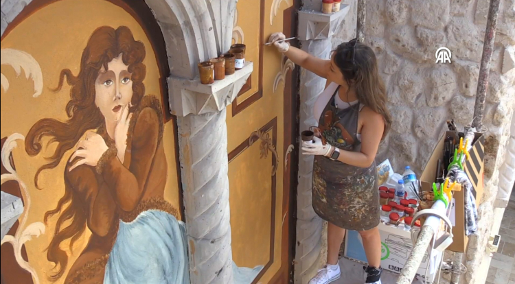 "Resim tekniklerini batıdan alıyoruz ama buradaki yorumla ortaya çıkan çalışmayı turistler çok beğeniyor. Çalıştığımız yerleri birçok turist müze sanıp girebiliyor. Osmanlı'dan kalan çiçek bezemeleri ve betimlemeler yapıyorum. Turistler bölgede çok fazla karşılaşmadığı için merakla alanı görmek ve fotoğraflamak istiyor. Estetik algının her yere girmesi gerekiyor. Bölgede buna ihtiyaç var, mekan sahipleri talepte bulunuyor. Genellikle akrilik ve profesyonel sanatsal ürünler kullanıyorum. İşlemim bittikten sonra uzun seneler zarar görmeden kalabiliyor."