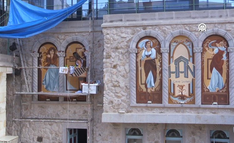 Nevşehir'in Göreme beldesinde yaşayan ressam Hatice Abalı, Kapadokya'daki butik otellerin duvarlarını benzeri olmayan tablolara dönüştürüyor.