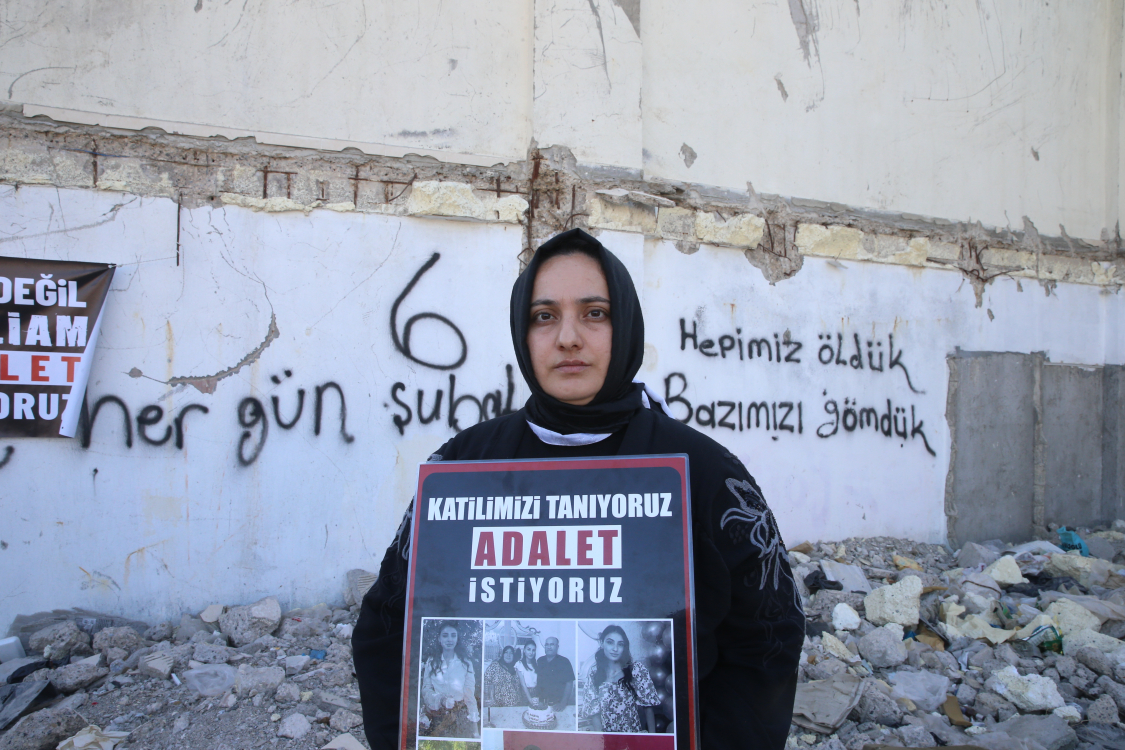 "Burada hayatını kaybeden 44 canımız için adalet nöbeti başlattık. Burası kentsel dönüşüm ile yapılan 5 yıllık bir binaydı ve depremin 8. saniyesinde yerle bir oldu. Hiçbir kimseye yaşam alanı bırakmadı. Belediyeye sadece 400 metre uzaklıkta olan bu binanın 3 buçuk katı, kaçak yapıldı ve ne yazık ki ne belediye ne de yapı denetim firması tarafından hiçbir şekilde müdahale olmadı. Yetkililere buradan seslenerek ilk davanın üzerinden 16 ay gibi süre geçmesine rağmen kaçak yapıya göz yuman ilgililerin soruşturmaya dahil edilmesini talep ediyoruz."