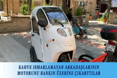 KAHVE ISMARLAMAYAN ARKADAŞLARININ MOTORUNU BANKIN ÜZERİNE ÇIKARTTILAR