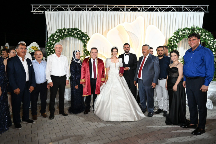 Çiftlerin nikâhını, Antalya Büyükşehir Belediye Başkanı Muhittin Böcek kıydı. Evlilik cüzdanını geline veren Böcek, genç çifte mutluluklar diledi.