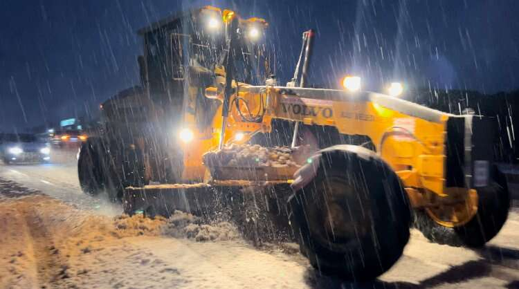 Kara yolunda seyir halindeki sürücüler yağış dolayısıyla zorlanırken, trafik ekipleri önlem aldı.