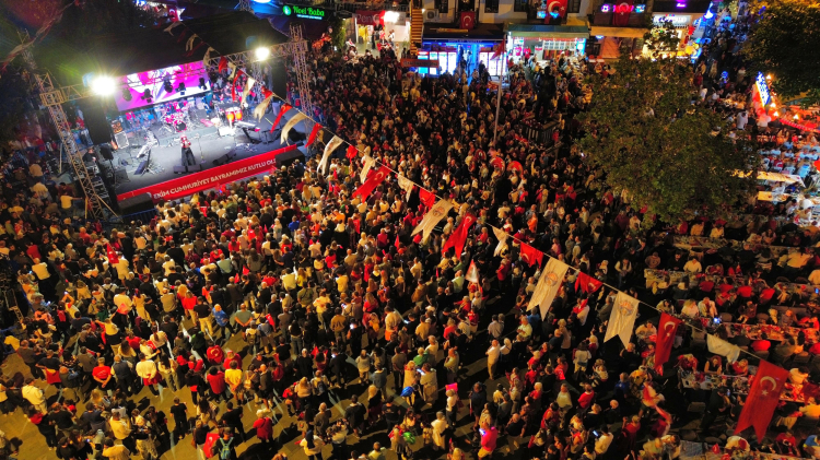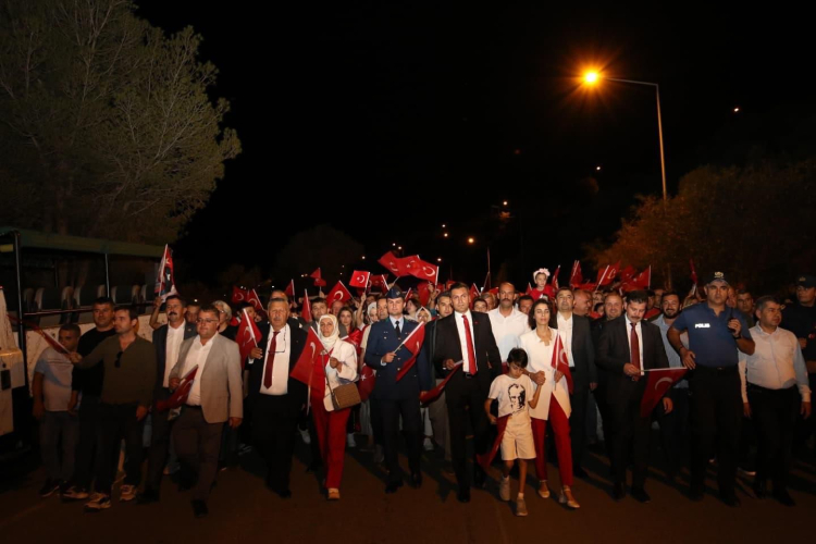 Cumhuriyet'in 101. yılı etkinlikleri kapsamında ilçenin girişinde D-400 Karayolu Büyük Kavşak yakınında toplanan vatandaşlar, ellerindeki Türk bayrakları ve meşalelerle marşlar eşliğinde Cumhuriyet Meydanı’na kadar yürüdü.