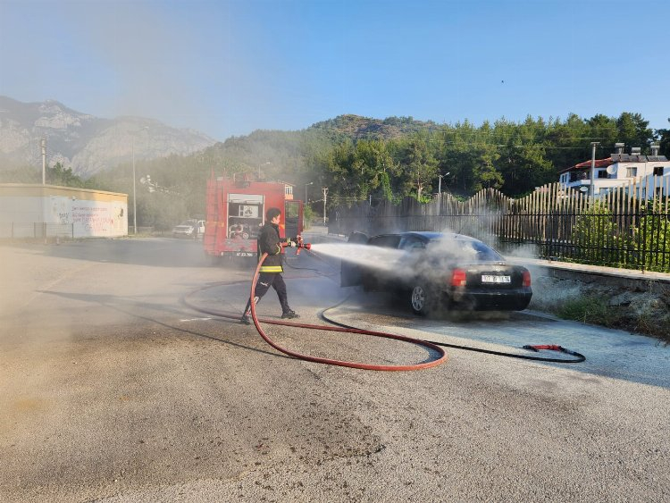 Kemer'de Seyir Halindeki Otomobilde Çıkan Yangın Söndürüldü