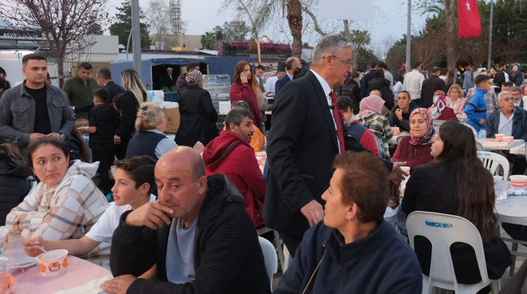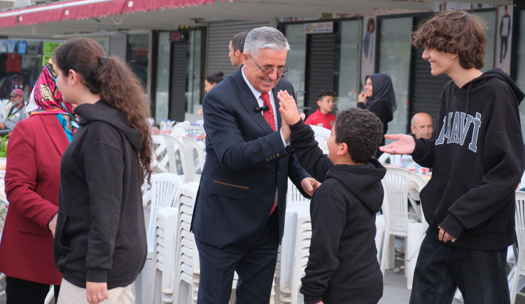 Belediye Başkanı Topaloğlu masaları tek tek dolaşarak iftarını açan vatandaşlarla sohbet ederek Kadir Gecesi'ni tebrik etti ve çocuklarla bol bol fotoğraf çektirdi.