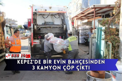 Antalya'nın Kepez ilçesindeki bir evin bahçesinden 3 kamyon çöp çıkarıldı.