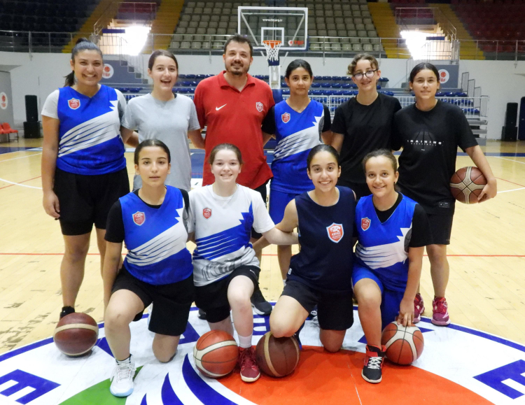 U14 ve U16 Kız Basketbol Takımı’nın oyuncuları sabahları kondisyon çalışması, öğleden sonraları top antrenmanı yapıyor.