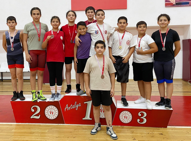 Kepez Belediyesi Spor Kulübü güreş takımı U13 Antalya Şampiyonasında 6 altın, 6 gümüş ve 3 bronz madalya kazandı
