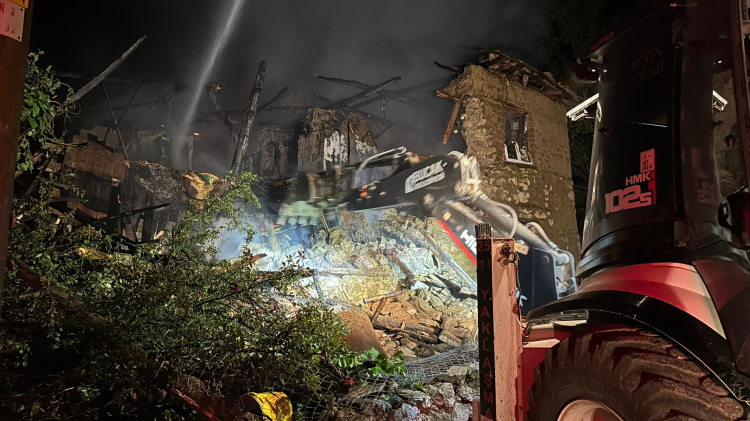 Ekipler tarafından söndürülen yangında evin alt katında bulunan ahır ksımındaki 5 küçükbaş hayvan canlı olarak kurtarılırken ev tamamen kullanılamaz hale geldi.