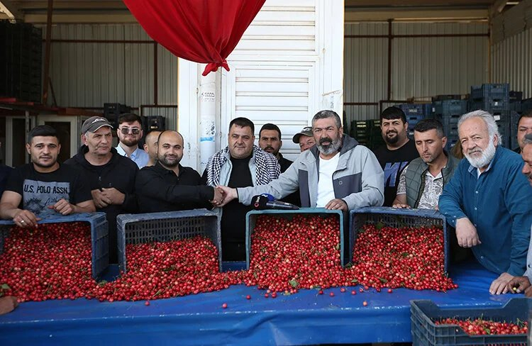 İlk kirazlar, kilogramı sembolik olarak 2 bin liradan tüccar Malkoç Fatihoğlu ve Kerim Sincar tarafından alındı.