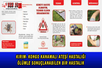Ülkemizde 2002 yılından itibaren her yıl Nisan-Ekim ayları arasında görülen bir hastalık türü olan Kırım-Kongo Kanamalı Ateşi hastalığı insanlara kenelerin bulaştırdığı ve ölümle sonuçlanabilen bir hastalık olarak biliniyor. Konuyla ilgili olarak Burdur İl Sağlık Müdürlüğü tarafından yapılan yazılı açıklamada; “Kırım Kongo Kanamalı Ateşi insanlara kenelerin bulaştırdığı ve ölümle sonuçlanabilen bir hastalıktır. Hastalığın etkeni olan virüsleri taşıyan keneler, yabani hayvanlar, çiftlik hayvanları ve insanlar arasında virüsün taşınmasına ve çoğalmasına aracılık etmektedirler” denildi. Burdur İl Sağlık Müdürlüğü tarafından yapılan yazılı açıklamada; “Bilindiği gibi ülkemizde 2002 yılından itibaren her yıl Nisan-Ekim ayları arasında Kırım-Kongo Kanamalı Ateşi hastalığı vakaları görülmektedir. Bu vaka sıklıkları bölgeler arasında değişiklikler göstermektedir. Hastalık insanlara daha çok kene tutunmasıyla bulaşır. Bunun yanında hayvanların üzerinden çıplak elle kene toplanması, patlatılması, ezilmesi ile de bulaşabilir. Ayrıca kanında mikrop bulunan hayvanların kan, idrar gibi vücut sıvılarına çıplak elle dokunmakla ve bu hastalığa yakalanan insanların tükürük, idrar ve kan gibi vücut sıvılarına temas etmekle de hastalık bulaşabilir. Hangi kenenin mikrop taşıdığı bilinmeyeceğinden tüm keneler hastalık yapabilir. Virüsler hayvanlarda genellikle belirti veren bir hastalığa yol açmamaktadır. Hastalık, mikrobun alınmasını takiben 1-3 gün içinde en fazla 9 gün içerisinde ortaya çıkabilir. Bu nedenle kene tutunmasından sonra 10 gün boyunca kendinizi takip etmelisiniz. Ateş, halsizlik, üşüme, titreme, baş ağrısı, yaygın kas ağrısı, yüzde ve gözlerde kızarıklık, bulantı, kusma ve ishal gibi belirtilerden en az ikisi varsa beklemeksizin bir sağlık kuruluşuna müracaat edilmelidir. Hastalıkla ilişkili olan kene kurak ve yarı kurak bozkır iklimini sevmektedir. Bozkır ile diğer iklimlerin kesişme yerlerinde, kuru taban örtüsüne sahip bodur ormanlık alanlarda yaygın olarak görülmektedir. Yaban hayatı ile çok yakından ilişkili olan kene, yaşam dönemlerinin bir bölümünü yaban hayvanlarından kan emerken, hayatının diğer dönemlerinde özellikle çiftlik hayvanlarından kan emmektedir. Hastalığın tedavisinde uygulanabilecek etkinliği bilimsel olarak kanıtlanmış bir ilaç ve aşı bulunmamaktadır. Kırım Kongo kanamalı ateşi hastalığının kontrolünde bilinçli korunma tedbirlerinin alınması oldukça önemlidir. Kene riski olan yerlerde bulunulduğunda, vücudu tamamen örtecek ve kenenin rahat görülebilmesi için açık renk giysiler giyilmelidir. Kenelerin vücuda girebileceği olası açıklıkların kapatılması önemlidir. (pantolon paçalarının çorap içine konulması, kapalı ayakkabı giyilmesi vb.) Kenelerin bulunduğu alanlara gidilirken vücudun açıkta kalan alanlarına cilde sürülebilen böcek kovucu maddelerin (repellent) uygulanması, korunma için etkili olmaktadır. Dış elbiselere, etkisi uzun süreli olan kene öldürücü ilaçları sürülmesi etkili bir koruma olabilir. %0,5 permethrin kullanılabilir. Kene riski olan yerlerden (bağ, bahçe, tarla, orman vb.) eve dönüldüğünde kollar, bacaklar, gövde, diz arkası, koltuk altları, kulak arkası, ense, saç dipleri, kasıklar dahil vücudun her tarafı ve elbiseler iyice kontrol edilerek kene olup olmadığına bakılmalıdır. Çocukların vücudu ve elbiseleri de anne ve babaları tarafından mutlaka kontrol edilmelidir. Kene tutunması halinde çıplak elle dokunmadan bir kene kartı, eldiven, kağıt mendil, bez, naylon poşet veya yaprak ile vakit geçirilmeden, kene ezilmeden, patlatılmadan hemen çıkarılmalı ve çıkartılan yer tentürdiyot ile temizlenmelidir. Kene çıkarılırken kenenin başı deri içinde kalsa bile hastalık açısından bilinen bir risk oluşturmamaktadır. Kene çıkarılamıyorsa hemen en yakın sağlık kuruluşuna giderek çıkartılması sağlanmalıdır. Vücuda tutunan kene ne kadar erken çıkartılırsa hastalığa yakalanma riski de o kadar az olur. Vücut üzerindeki keneler ezilmemeli, öldürülmemeli ve patlatılmamalıdır. Keneleri vücuttan uzaklaştırmak amacıyla üzerine sigara basmak veya kolonya ve gazyağı dökmek gibi yöntemlere başvurulmamalıdır. Konuyla ilgili sorularınız için 184 ALO SABİM hattını da arayabilirsiniz” denildi.
