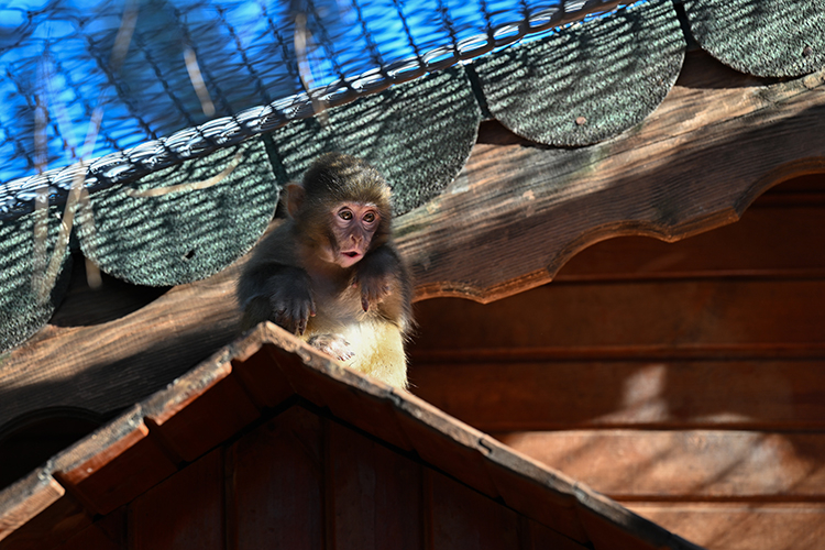 Kendisine ayrılan özel alanda ziyaretçilerin uzaktan izleyebildiği 3-4 aylık dişi maymun, veterinerler tarafından yakından takip ediliyor.