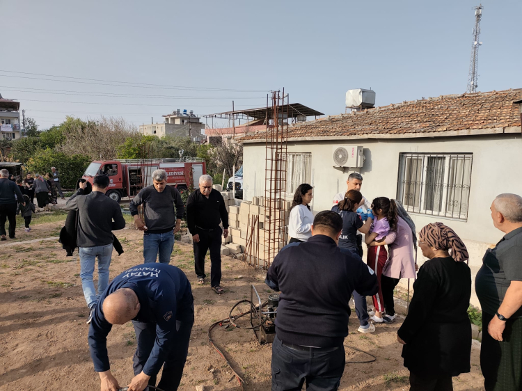 Hatay'ın Kumlu ilçesinde koluna inşaat demiri batan çocuk, itfaiye ekiplerince kurtarıldı.