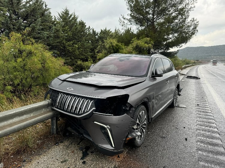 Mersin'in Tarsus ilçesinde otoyoldaki bariyere saplanan otomobilde hasar oluştu.