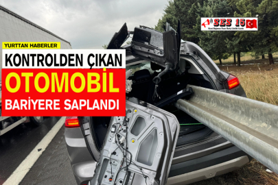 Kontrolden Çıkan Otomobil Bariyere Saplandı