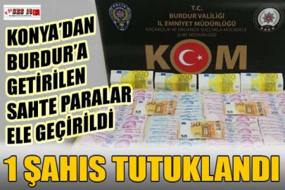 Burdur İl Emniyet Müdürlüğü, Konya'dan Burdur'a sahte para getiren A.Ö. ve Y.A., Burdur'a girişte durdurularak üzerlerinde ve araçlarında arama yapıldı. Aramalarda, 4 adet 200 Euro, 3 adet 50 Euro ve 19.230 Türk Lirası ele geçirildi. Gözaltına alınan şahıslardan Y.A., tutuklanarak cezaevine teslim edildi.