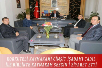 KORKUTELİ KAYMAKAMI CİMŞİT İŞADAMI CADIL İLE BİRLİKTE KAYMAKAM SEZGİN’İ ZİYARET ETTİ