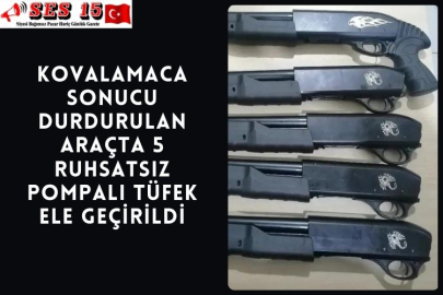 Kovalamaca sonucu durdurulan araçta 5 ruhsatsız pompalı tüfek ele geçirildi
