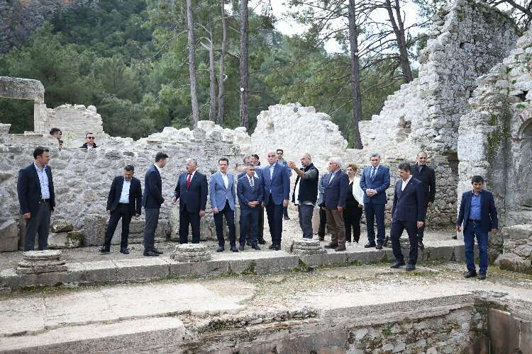 Bakan Ersoy ve beraberindekiler Olympos Antik Kenti'nde kazı çalışmalarını inceledi.