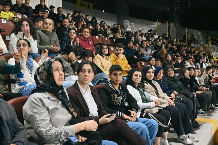 Atatürk Stadı'nda düzenlenen konserde, öğretmen ve öğrencileri, sahne alarak eserleri seslendirdi.