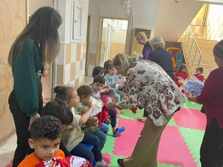 Hatay'ın Samandağ ilçesinde dikiş eğitimi alan kursiyerler, tasarladıkları kıyafetleri anaokulu öğrencilerine verdi.
