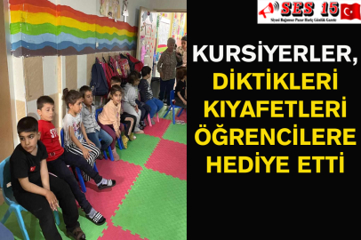 Kursiyerler, diktikleri kıyafetleri ana sınıfına giden öğrencilere hediye etti.