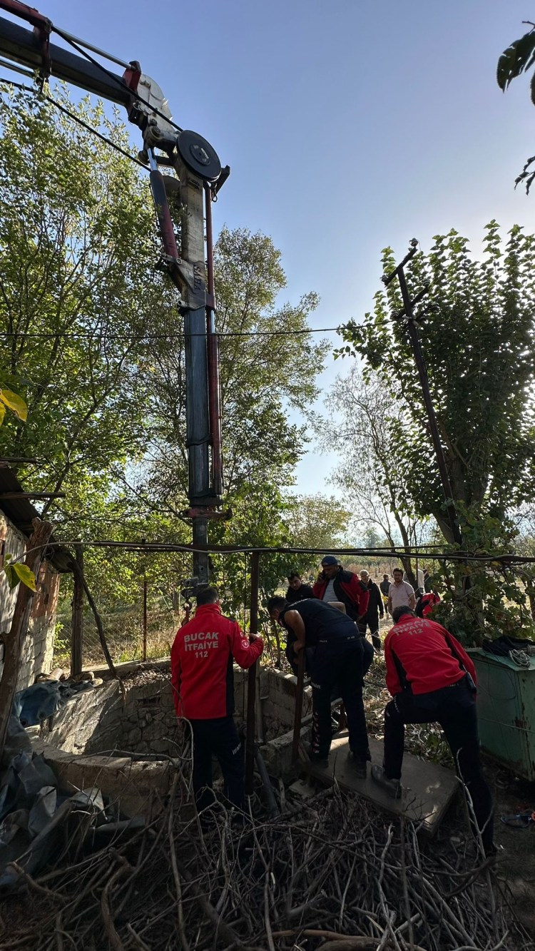 Burdur'un Bucak İlçesinde kuyuya düşen inek itfaiye ekipleri tarafından kurtarıldı.
