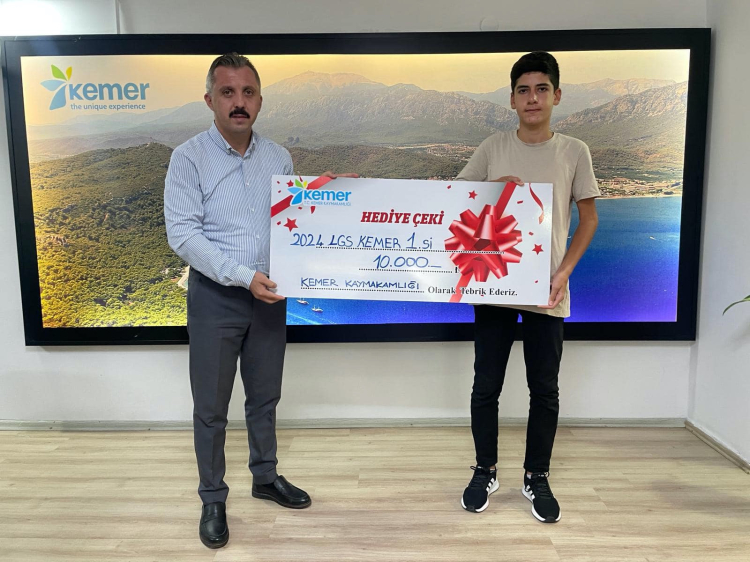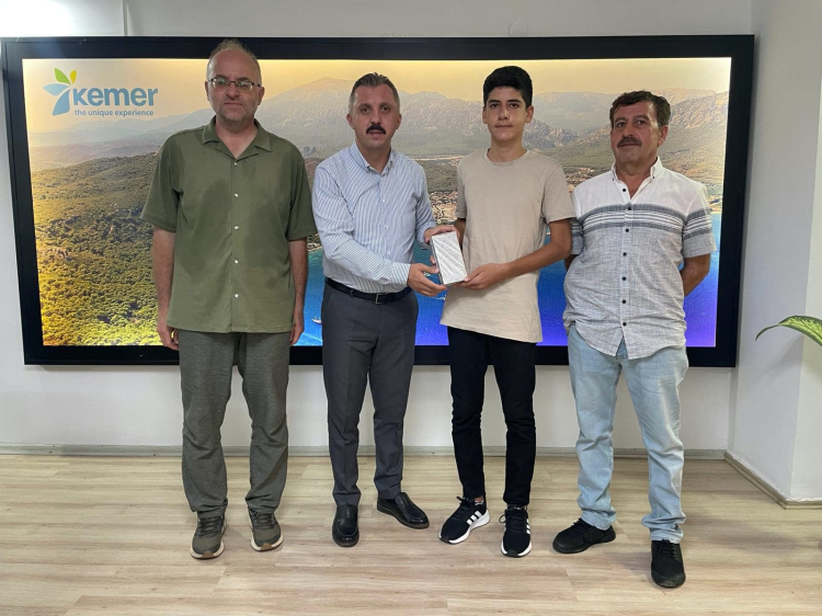 Antalya'nın Kemer ilçesinde Liselere Geçiş Sistemi (LGS) sınavında birinci ve ikinci olan öğrencilere ödül verildi