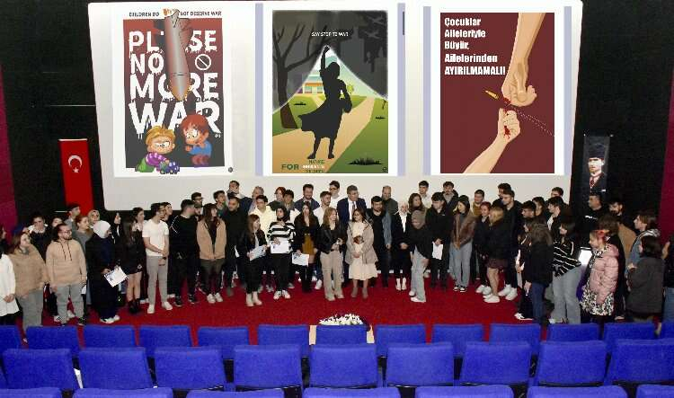 Dereceye giren Bucak Emin Gülmez Teknik Bilimler Meslek Yüksekokulu öğrencileri; birinci Hazercan Çeliktaş, ikinci Ahmet Solak ve üçüncü Buse Taner, kısa konuşmalar yaparak afişlerini tasarlarken neler düşündüklerini, hissettiklerini ve çizerken yaşadıkları duyguları paylaştılar.