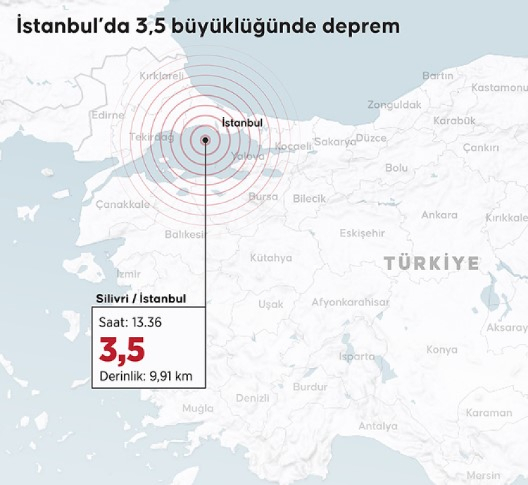 Afet ve Acil Durum Yönetimi Başkanlığının internet sitesinde yer alan bilgiye göre, merkez üssü Marmara Denizi olan 3,5 büyüklüğünde sarsıntı kaydedildi.