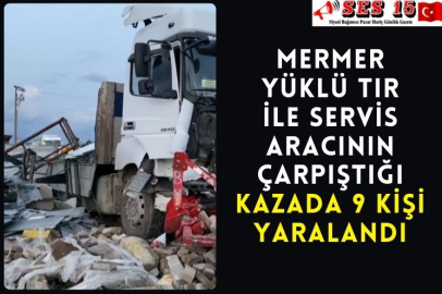 Mermer yüklü tır ile servis aracının çarpıştığı kazada 9 kişi yaralandı