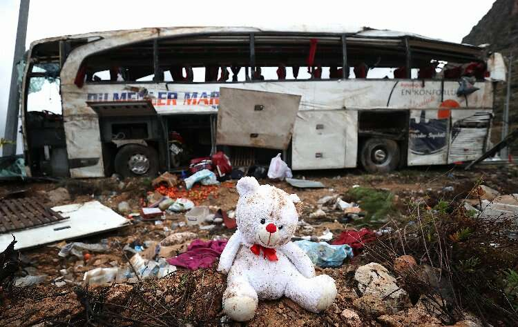 Mersin'in Aydıncık ilçesinde, şehirler arası yolcu otobüsünün devrilmesi sonucu 9 kişi hayatını kaybetti, 13'ü ağır 30 kişi yaralandı.