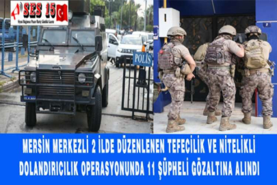 MERSİN MERKEZLİ 2 İLDE DÜZENLENEN TEFECİLİK VE NİTELİKLİ DOLANDIRICILIK OPERASYONUNDA 11 ŞÜPHELİ GÖZALTINA ALINDI.