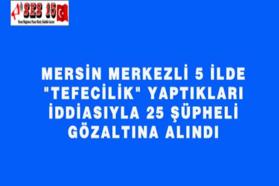 MERSİN MERKEZLİ 5 İLDE "TEFECİLİK" YAPTIKLARI İDDİASIYLA 25 ŞÜPHELİ GÖZALTINA ALINDI