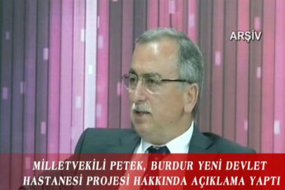 MİLLETVEKİLİ PETEK, BURDUR YENİ DEVLET HASTANESİ PROJESİ HAKKINDA AÇIKLAMA YAPTI