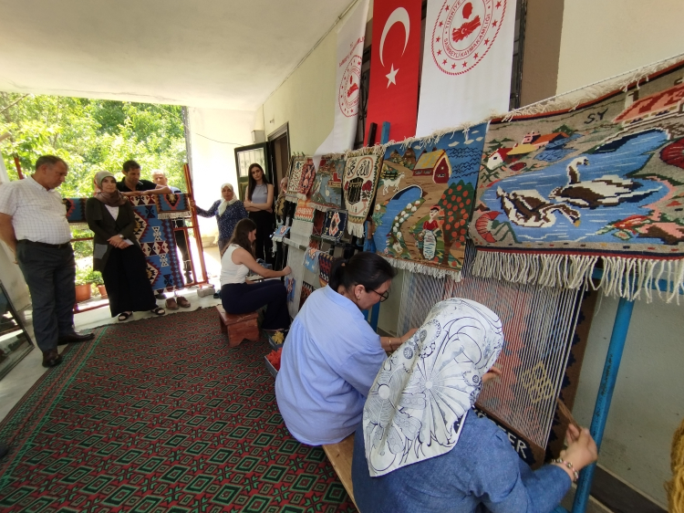Adana'da yaşayan ve Halk Eğitim Merkezinde usta öğreticilik yapan Moldovalı Gülcan Tutar, kilim kursuna katılanlara Türk kültürünün geleneksel motiflerini dokumayı öğretiyor
