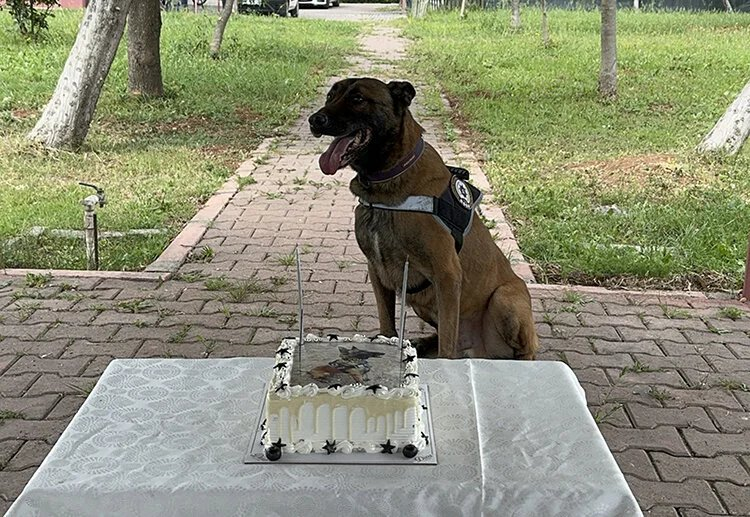 Adana'da polis ekipleri, narkotik dedektör köpeği "Hulk" için doğum günü kutlaması yaptı