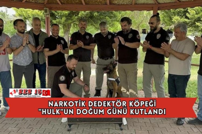 İl Emniyet Müdürlüğü Narkotik Suçlarla Mücadele Şubesi, 3 yıldır birlikte çalıştıkları Belçika Malinois cinsi uyuşturucu ve uyarıcı madde arama köpeği "Hulk"un 7. doğum günü dolayısıyla Köpek Eğitim Merkezi'nde kutlama programı hazırladı.