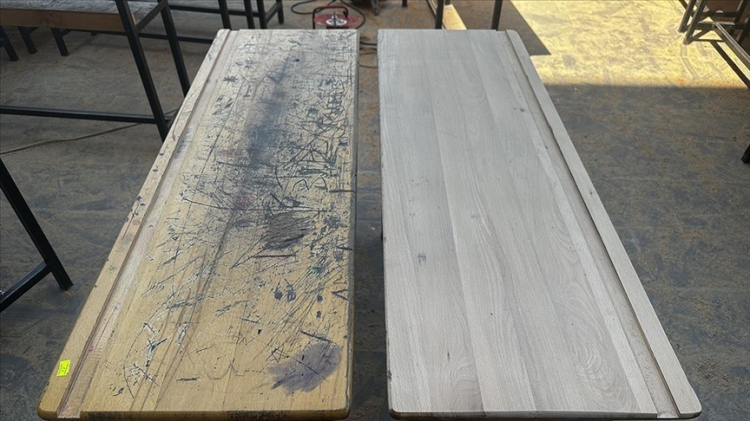 Sıraların üstündeki yıpranmaları zımpara yardımıyla temizleyen ve kullanımının devamını sağlayan taşınabilir makine, İl Milli Eğitim Müdürlüğünce belirlenen programa göre kentteki okullarda kullanılıyor.